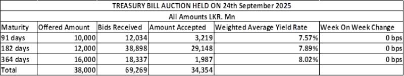 However, in terms of subscription, 90.41% of the total offered amount was raised, with successful bids amounting to Rs. 34.35 billion against the Rs. 38 billion on offer in the first phase of competitive bidding. This marked the fifth consecutive auction that fell short of fully raising the targeted amount. Nevertheless, this represented a notable improvement compared to last week’s 72% subscription.