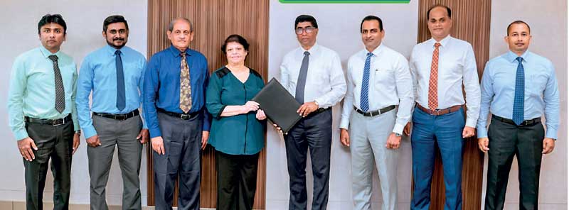 Commercial Bank Deputy General Manager – Personal Banking S. Ganeshan (right) and Abans Group Director Dr. S. Dubash exchange the agreement in the presence of senior representatives of the two companies