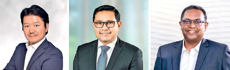 From left: JCB Card International (South Asia) MD/Regional Head Yuichiro Kadowaki, Commercial Bank Managing Director/CEO Sanath Manatunge and LankaPay CEO Channa de Silva