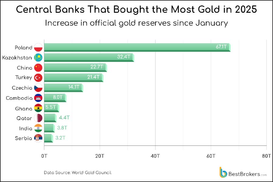 The team at BestBrokers has analysed the World Gold Council’s November 2025 release, covering all of the available data for 2025, to identify the world’s largest buyers and sellers of gold during this period.