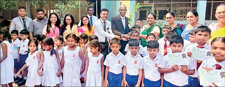 HDFC Bank GM/CEO Hemal Lokugeegana joins the children of Kotahema Sinhala Junior school, to plant a sapling during the tree planting event