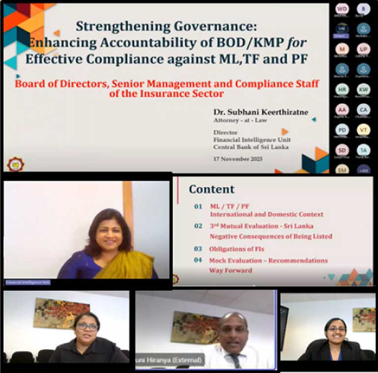 The session was organised in collaboration with the Financial Intelligence Unit (FIU) with the assistance of Insurance Association of Sri Lanka (IASL) and Sri Lanka Insurance Brokers Association (SLIBA).