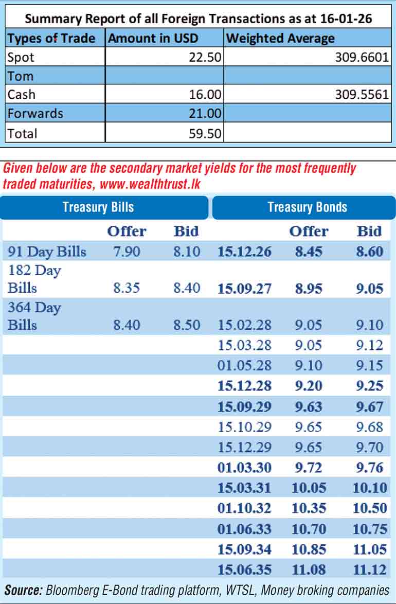 The total USD/LKR traded volume for 16 January 2026 was $ 59.50 million.