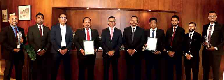 From left: NDB Associate Manager, Software Development M.K. Shyamal Indika, Chief Manager/Chief Information Security Officer Rasika Sampath, DCEO K.V. Vinoj, AVP IT Lasantha Mathupala, Director/CEO Kelum Edirisinghe, VP IT/Chief Information Officer Indika Gunawardana, Senior Manager IT Security and Networking Sampath Kadupitiyage, Junior Executive – IT Security Pasindu Bandara, Manager SOC Isuru Rajaguru, and Deputy Manager – Software Development Roshan Kalinga