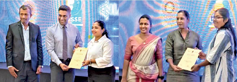 Union Bank Chief Business Officer Asanka Ranhotty, Vice President – Marketing Thishani Dissanayake and University of Moratuwa Dean Prof. Dinesh Samarasinghe, and Faculty of Business Head Dr. Gayithri Kuruppu awarding the NEDP certificates