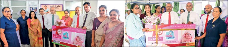 Chairman, Prof. Narada Fernando symbolically presented ‘Isuru Udana’ gift vouchers and other gifts at the Castle Street Hospital for Women and the De Soysa Hospital for Women in Borella.