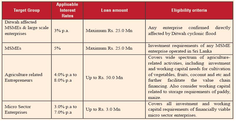 Government funded loan products are made available at People’s Bank branches for the following sectors (see table) in line with Government policy directives in MSME sector.