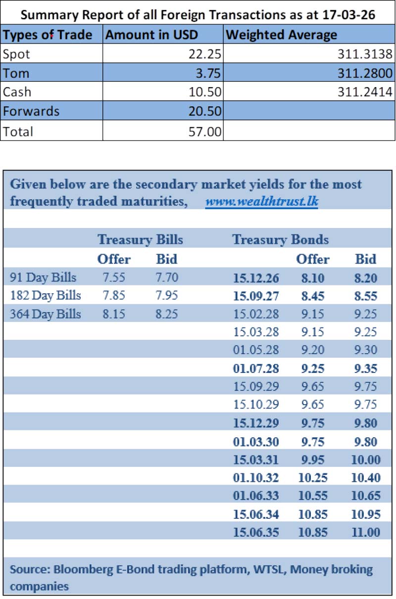 The total USD/LKR traded volume for 17 March was $ 57 million.