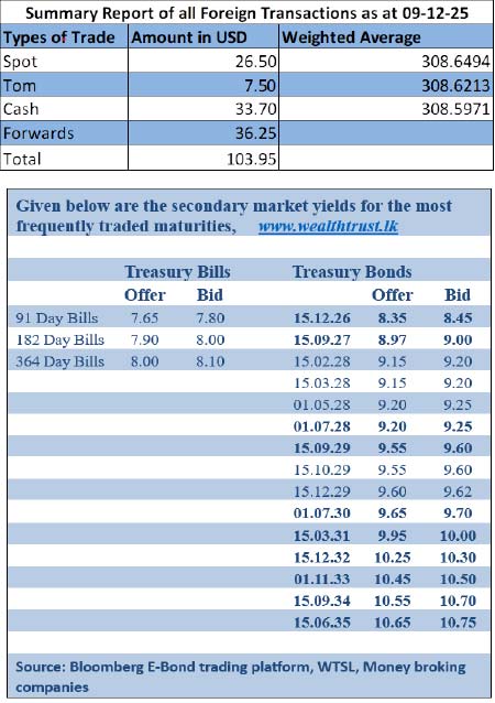 The total USD/LKR traded volume for 09 December 2025 was $ 103.95 million.
