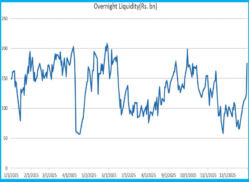 Overnight Money Market Liquidity remained in a surplus throughout the entirety of 2025 and despite fluctuations, the metric was seen above Rs 100 billion for 80% of the year. This too contributed towards demand for Government Securities.