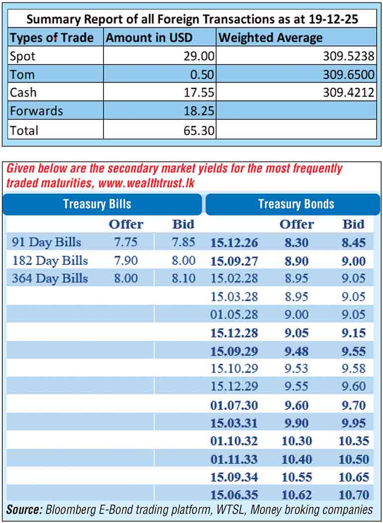 The total USD/LKR traded volume for 19 December 2025 was $ 65.30 million.
