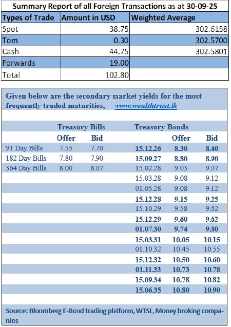The total USD/LKR traded volume for 30 September 2025 was $ 102.80 million.