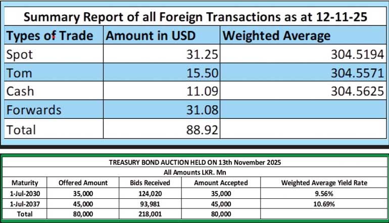 In the Forex market, the USD/LKR rate on spot contracts closed the day depreciating to Rs. 305.50/305.90 as against Rs. 304.60/304.65 the previous day.