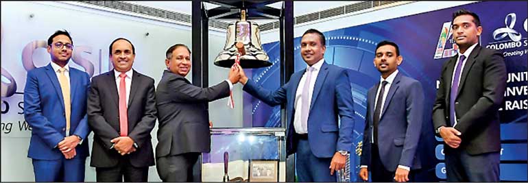 From left: Capital Alliance Partners CEO Nishok Goonasekera, CSE CEO Rajeeva Bandaranaike, Sarvodaya Development Finance Chairman Channa De Silva, CEO Nilantha Jayanetti, Head of Strategic Planning Mahesh Jayasanka, and Capital Alliance Partners Investment Banking Assistant Manager Faith Cooray