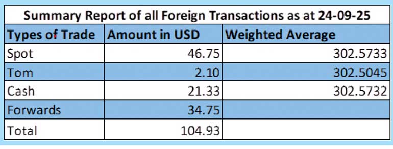 The total USD/LKR traded volume for 24 September was $ 104.93 million.