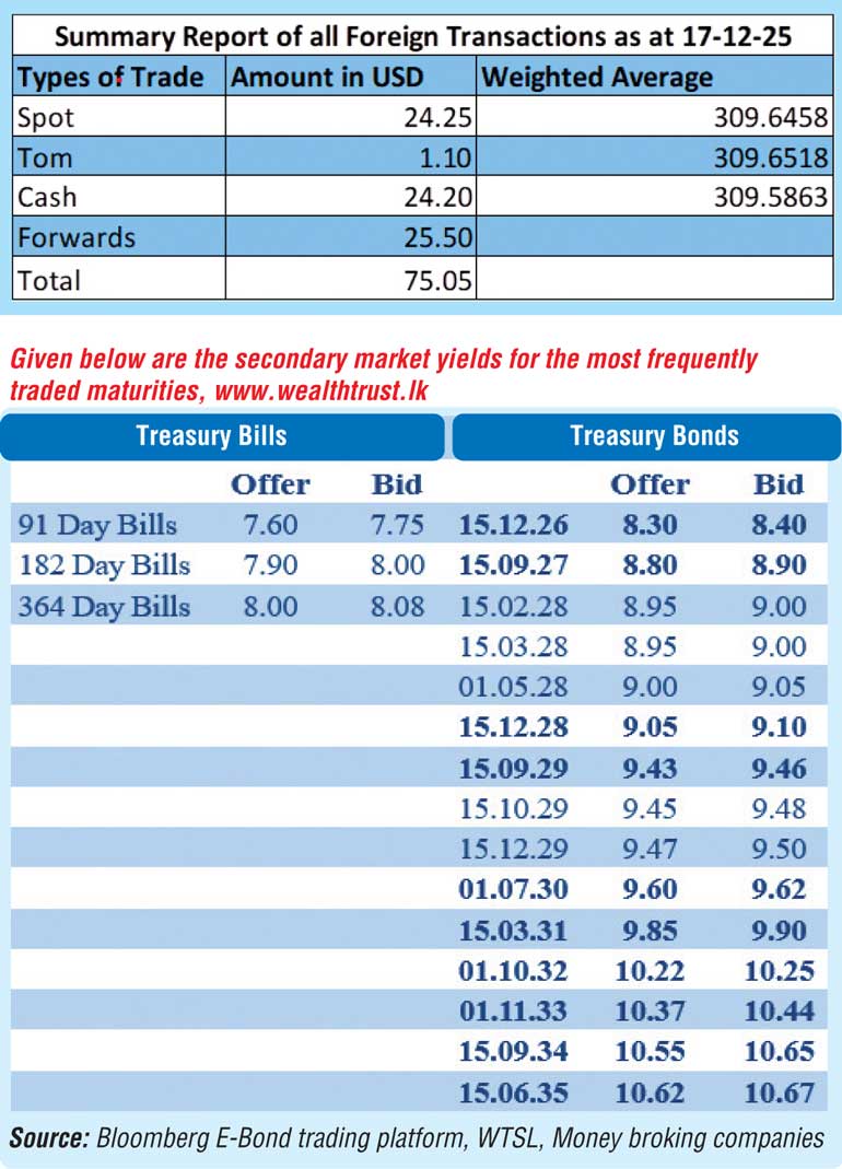 The total USD/LKR traded volume for 17 December 2025 was $ 75.05 million.