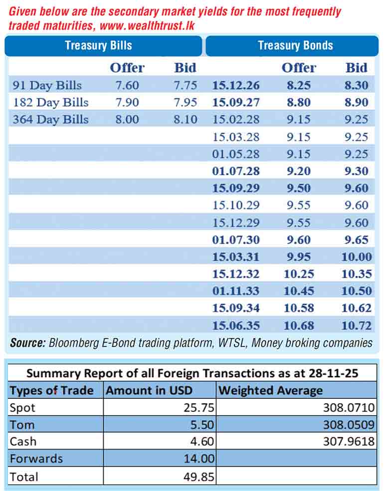 The total USD/LKR traded volume for 28 November was $ 49.85 million.