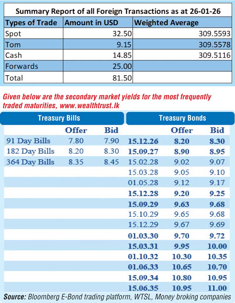 The total USD/LKR traded volume for 26th January 2026 was $ 81.50 million.