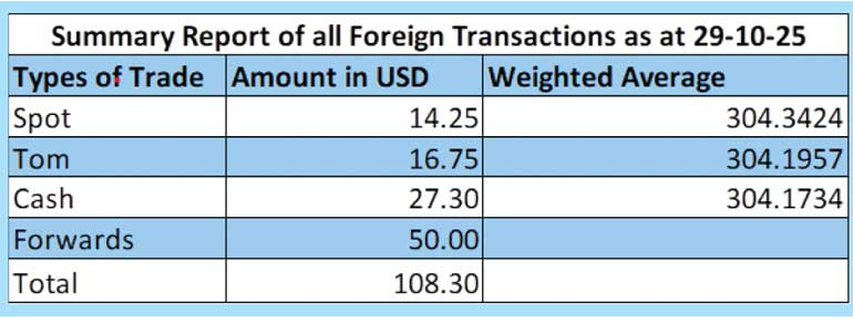 The total USD/LKR traded volume for 29 October 2025 was $ 108.30 million.