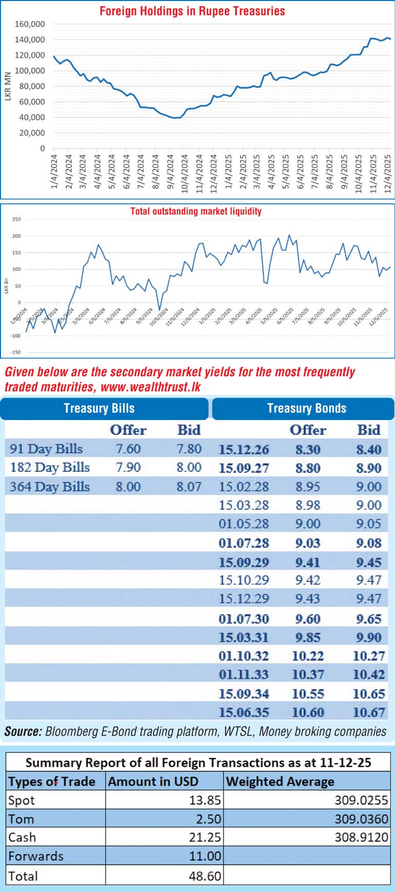 The Treasury Bond auctions held last Thursday (11 December) too recorded strong outcomes as the longer-dated maturities were fully subscribed at the first phase, with yields accepted well within their respective pre-auction rate bands.