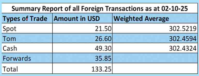 In the Forex market, the USD/LKR rate on spot contracts was seen closing the week virtually unchanged at Rs. 302.45/302.50 as against the previous week’s closing level which was also Rs. 302.45/302.50. However, this was subsequent to trading at a high of Rs. 302.45 and a low of Rs. 302.65. The daily USD/LKR average traded volume for the first four trading days of the week stood at $ 120.28 million.