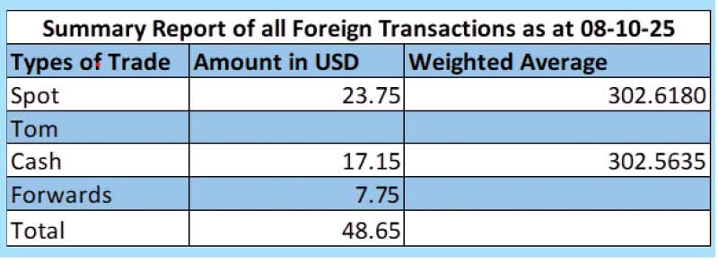 The total USD/LKR traded volume for 8 October was $ 48.65 million.