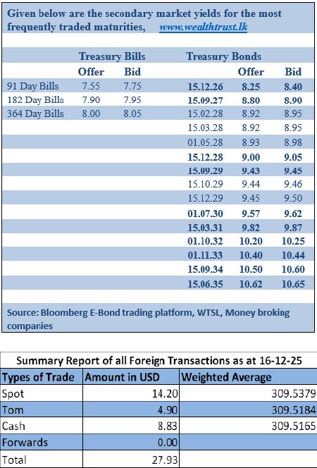 The total USD/LKR traded volume for 16 December 2025 was $ 27.93 million.