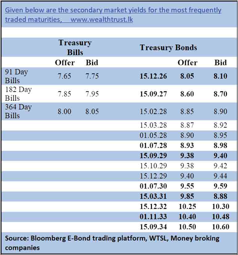 (References: Central Bank of Sri Lanka, Bloomberg E-Bond trading platform, Money broking companies)