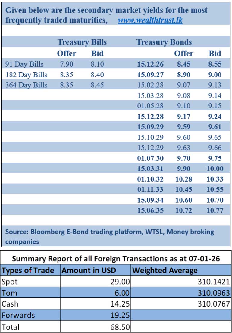 The total USD/LKR traded volume for 7 January was $ 68.50 million.