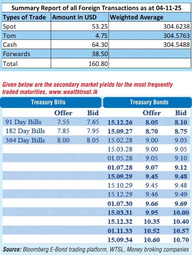 The total USD/LKR traded volume for 4 November 2025 was $ 160.80 million.