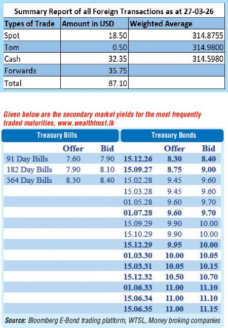 The total USD/LKR traded volume for 27 March was $ 87.10 million.