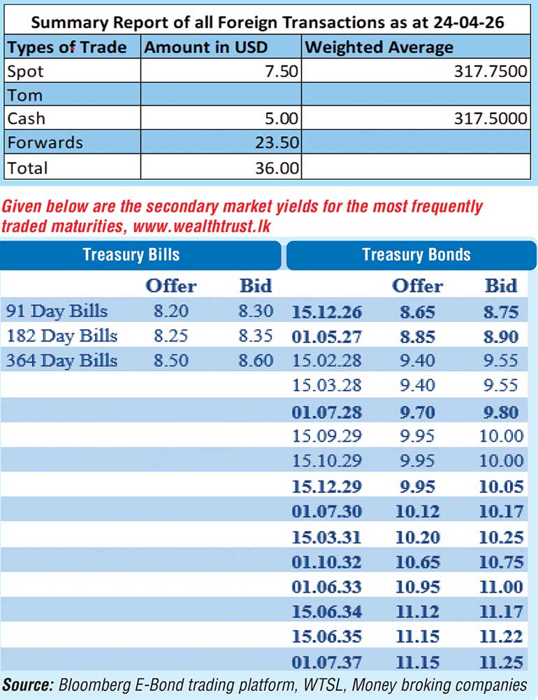 The total USD/LKR traded volume for 24 April was $ 36 million.
