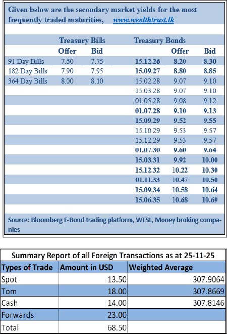 The total USD/LKR traded volume for 25 November 2025 was $ 68.50 million.