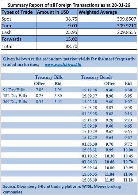 The total USD/LKR traded volume for 20 January was $ 88.70 million.
