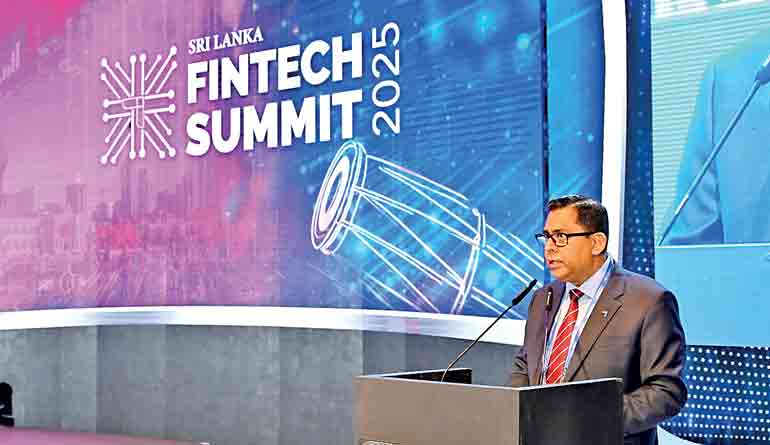 HNB MD/CEO Damith Pallewatte speaking at the opening ceremony of the Sri Lanka Fintech Summit 2025