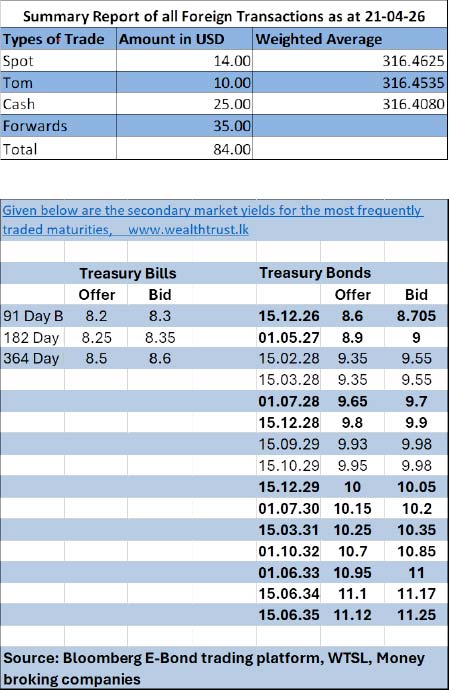 The total USD/LKR traded volume for 21 April was $ 84 million.