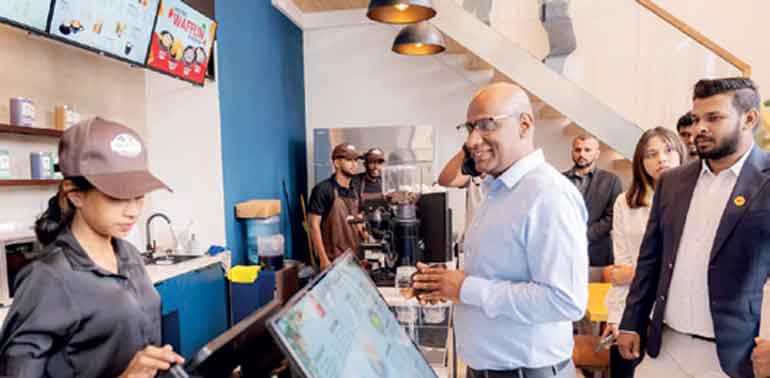John Keells Properties Head of Property Sector and John Keells Group Executive Vice President Inoke Perera making the first purchase at the launch of Tea Avenue Daily Brew at TRI ZEN