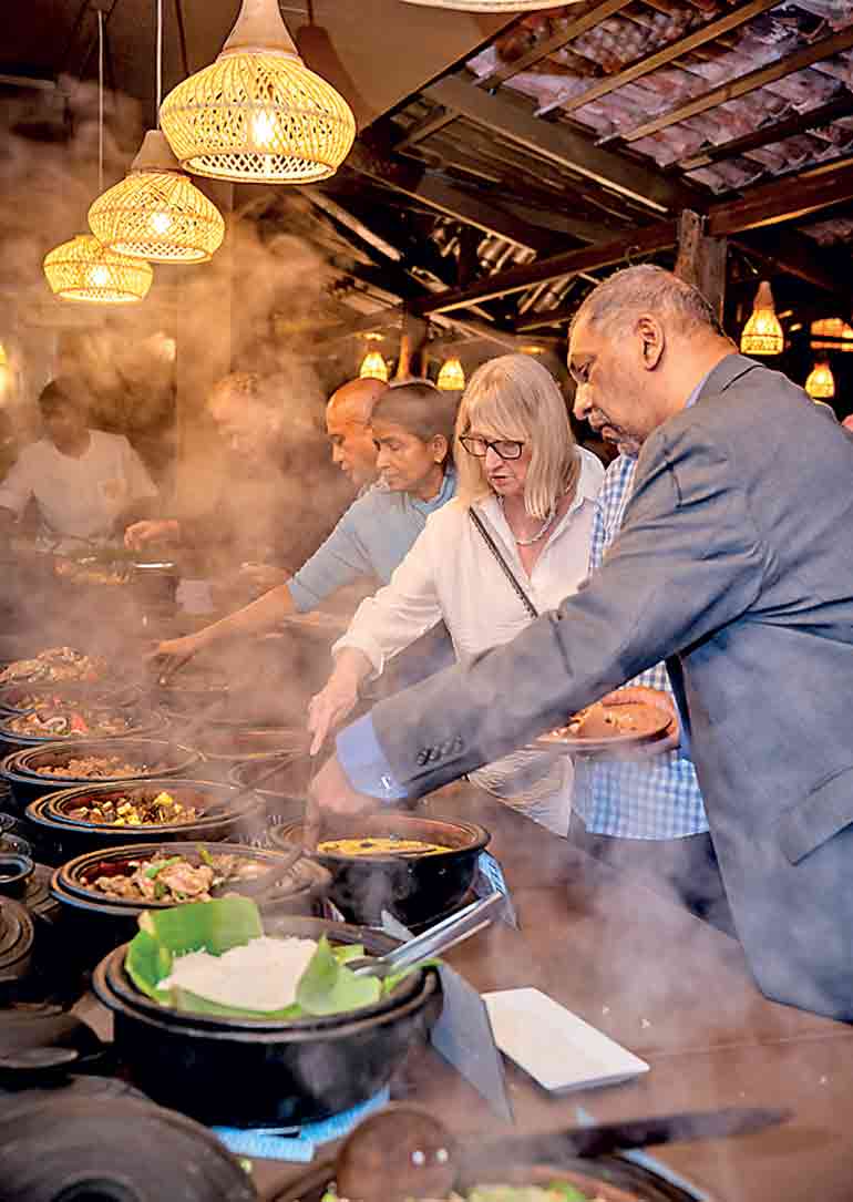 Redesigned as a “village within the city,” Nuga Gama offers an immersive cultural dining experience that blends rustic charm with modern sophistication. Built with wattle-and-daub structures, clay floors, and open-air kitchens, the space evokes the rhythm and warmth of traditional Sri Lankan village life while offering the comfort and refinement of contemporary dining.