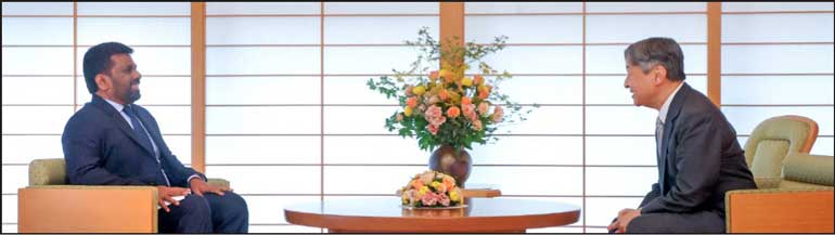 President Anura Kumara Disanayake called on Japan’s Emperor Naruhito at the Imperial Palace on Tuesday during his State visit. Upon his arrival at the Imperial Palace in Tokyo, the official residence of the Emperor of Japan, President Disanayake was warmly received by Emperor Naruhito and the two subsequently engaged in a cordial discussion. Disanayake returned to Sri Lanka yesterday morning after the three-day visit to Japan.