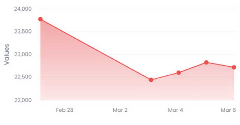 During the week, the ASPI declined 4.34% or 1,032.15 points and the S&P SL20 was down 4.14% or 275.22 points. Foreign investors were net sellers in the week on a net outflow of Rs.791.2 million.