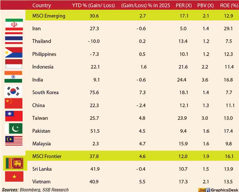“Market valuations at the end of 2025 reflected a PER of 10.73x, PBV of 1.45x, and dividend yield of 2.62%, indicating that the CSE remains an attractive investment relative to selected regional peers,” Softlogic Stockbrokers said.