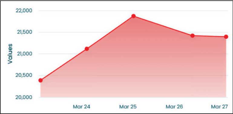 Both indices ended on the up compared to a week earlier with the ASPI gaining 3.56% or 736 points during the week while the active S&P SL20 gained 4.3% or 247 points. Foreign investors were net sellers on a net outflow of over Rs. 1.2 billion.