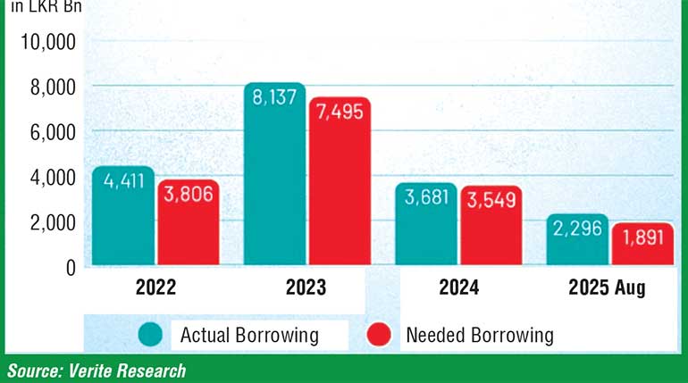 That year, the Government’s total financing need was Rs. 7,495 billion. This included Rs. 5,331 billion in debt repayments and a Budget deficit of Rs. 2,164 billion. Yet, the Government borrowed Rs. 8,137 billion. In effect, it borrowed around Rs. 642 billion more than it needed at the time. That excess was added to the Treasury cash balance.