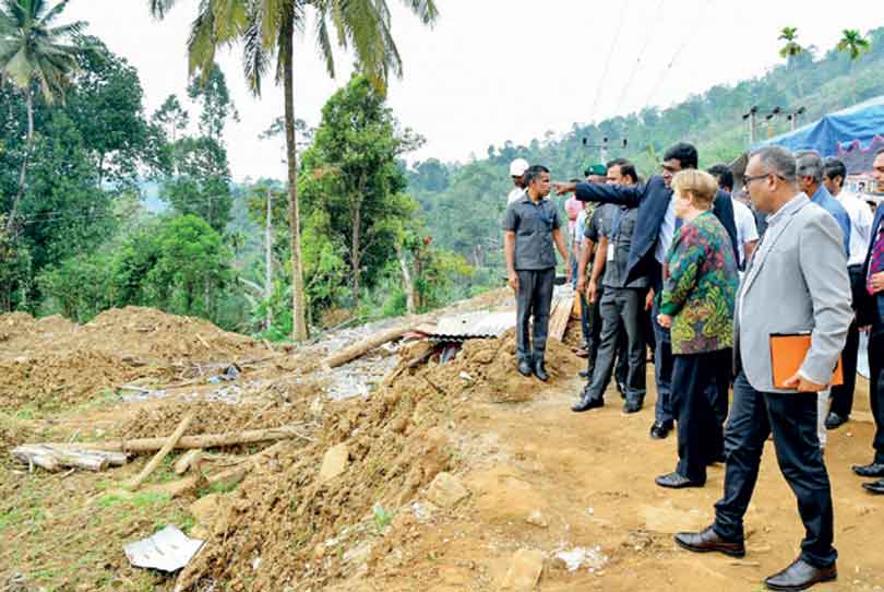 As part of her historic tour, Georgieva visited Mawathura village in the Udapalatha Divisional Secretariat Division, one of the most sensitive zones impacted by the national disaster, to inspect the site of a landslide triggered during Cyclone Ditwah.
