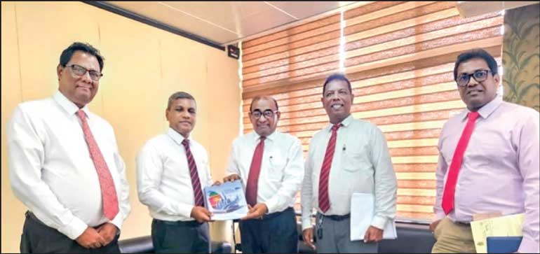 From left: Ceylon Institute of Builders Vice-President Ruwan De Silva, Housing, Construction and Water Supply Minister Dr. Susil Ranasinghe, Ceylon Institute of Builders President Dr. Rohan Karunaratne, Treasurer Ranji Hewage, and Secretary to the Ministry Chaminda Nuwan Thilakaratne