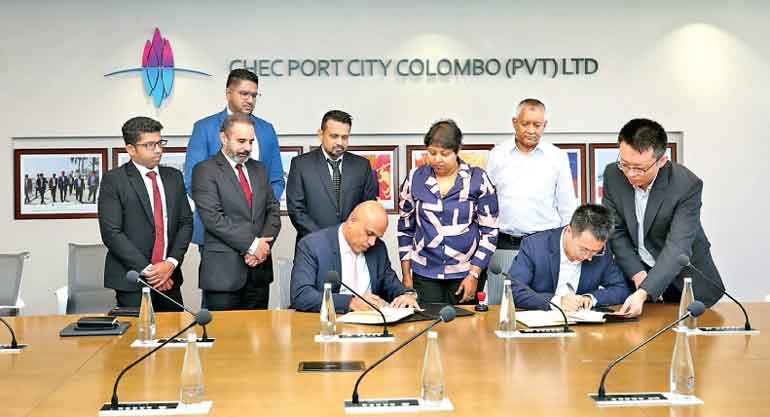 Canary Wharf Holdings Chairman Sharhan Musheen, signing Memorandum of Understanding with CHEC Port City Colombo Managing Director Xiong Hongfeng