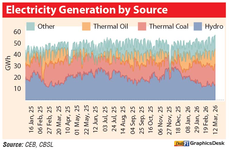 While Sri Lanka’s coal and renewable capacity provides some buffer, the power system continues to rely on oil-fired generation during periods of higher demand or lower hydro availability. With global oil prices remaining elevated, this shift in the generation mix could increase pressure on energy import costs and the overall electricity sector if geopolitical tensions persist.