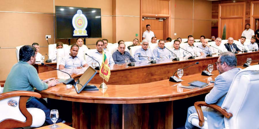 Foreign Affairs, Foreign Employment and Tourism Minister Vijitha Herath, Secretary to the President Dr. Nandika Sanath Kumanayake, Treasury Secretary Dr. Harshana Suriyapperuma, Defence Secretary Air Vice Marshal (Retd.) Sampath Thuyacontha, Tri-Forces Commanders, the Inspector General of Police, senior officials of the defence services, The Ceylon Chamber of Commerce Chairman Krishan Balendra, along with its members and business leaders including Mohan Pandithage, Nathan Sivagananathan, Supun Weerasinghe, Asoka Hettigoda, Yohan Lawrence, M. Shanthikumar, and Hasitha Premaratne, and many others were present at the meeting.