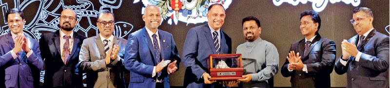 Shangri-La Hambantota General Manager Refhan Razeen (left) hands over a token to President Anura Kumara Disanayake celebrating the official launch of the Ruhunu Ring
