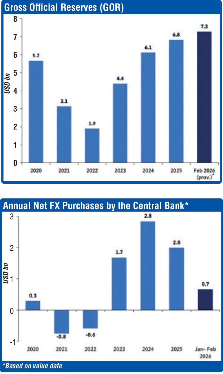 The CBSL has continued to be a net buyer of foreign exchange, purchasing a net $ 700 million in the first two months of 2026.